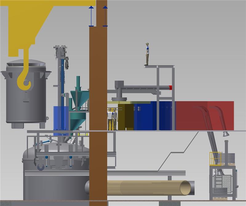 Die besondere Herausforderung in diesem Fall war es, die Gießhalle weitgehend von störenden Deckelaufbauten frei zu halten und die Arbeitssicherheit zu verbessern.